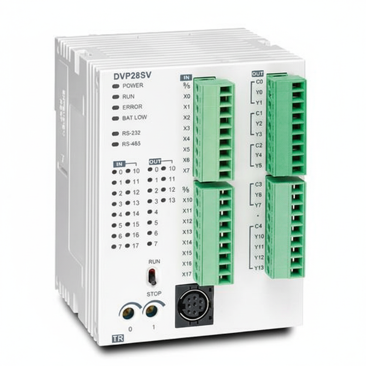 پی ال سی دلتا DVP28SV11T2 از سری پیشرفته DVP-SV2 یکی از سریعترین و قدرتمندترین PLCهای دلتا در رده مینی است. این مدل با ۱۶ ورودی دیجیتال و ۱۲ خروجی دیجیتال ترانزیستوری (NPN/PNP) طراحی شده و مناسب کاربردهایی است که نیاز به کنترل پرسرعت، شمارش پالس دقیق و فرماندهی لحظهای دارند.