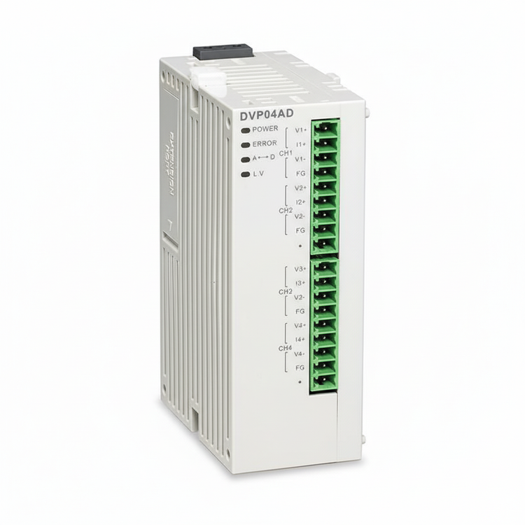 ماژول توسعه DVP04AD-SL یکی از افزونههای تخصصی PLCهای دلتا است که برای دریافت سیگنالهای آنالوگ طراحی شده است. این ماژول دارای ۴ ورودی آنالوگ بوده و میتواند دادههای مختلفی مانند ولتاژ و جریان را با دقت بالا دریافت و پردازش کند.