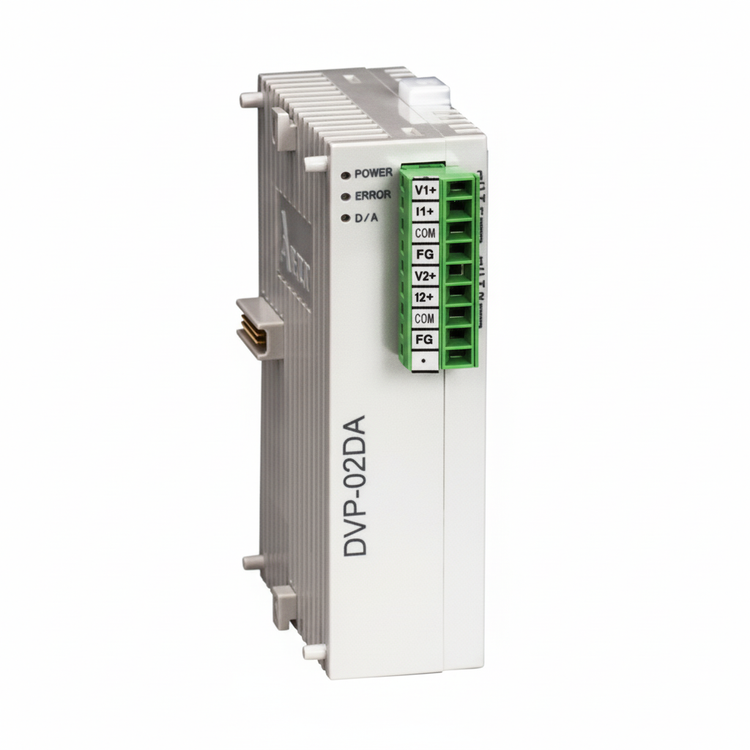 DVP02DA-S روی سمت راست CPU نصب میشود و با تغذیه ۲۴ ولت DC کار میکند. طراحی باریک، دقت بالا و سازگاری کامل با سریهای SS2، SA2، SX2، SE و SV دلتا، باعث شده این ماژول در بازار ایران بسیار پرطرفدار باشد.