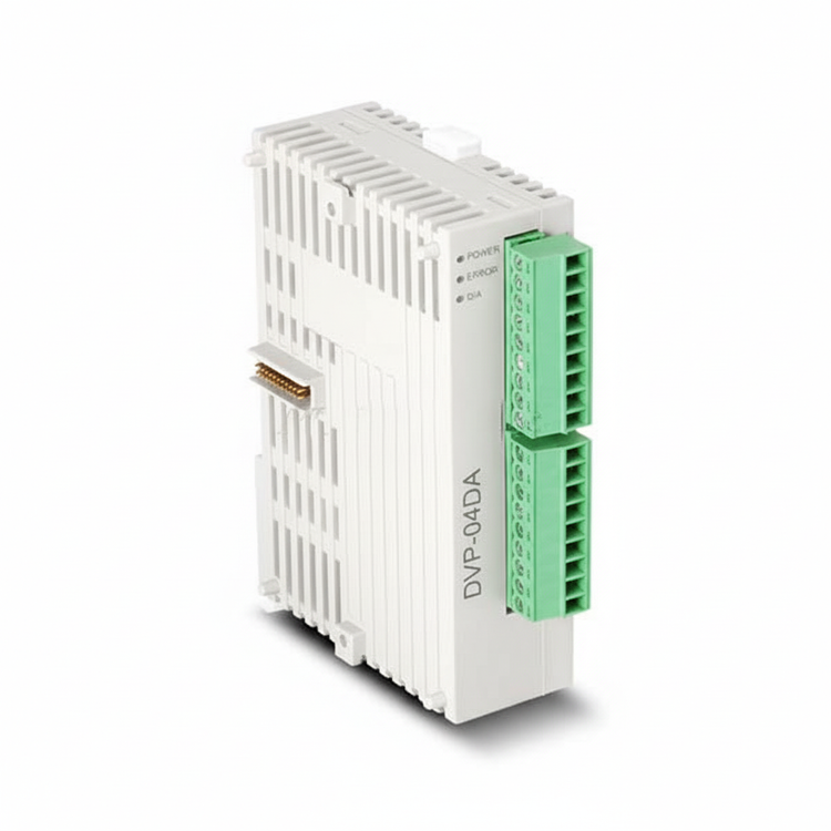 ماژول توسعه DVP04DA-SL از سری Slim دلتا، یکی از پرکاربردترین افزونههای PLC دلتا برای افزودن خروجیهای آنالوگ است. این ماژول دارای ۴ خروجی آنالوگ میباشد و امکان تولید سیگنالهای ولتاژی و جریانی را با دقت بالا فراهم میکند.