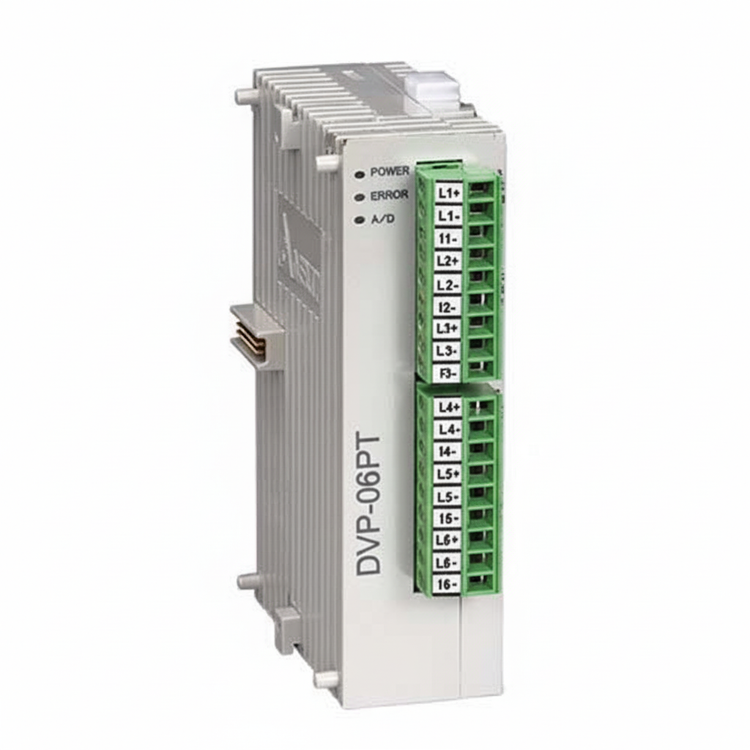ماژول DVP06PT-S یکی از ماژولهای توسعه سری Slim دلتا است که برای اندازهگیری دما از طریق سنسورهای RTD طراحی شده است. این کارت دارای ۶ ورودی RTD بوده و امکان اتصال همزمان چندین سنسور مقاومتی مانند PT100 و PT1000 را فراهم میکند.