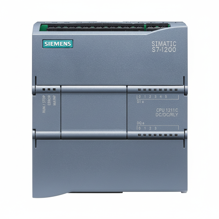 CPU 1211C DC/DC/Relay HE از سری S7-1200 زیمنس، یک ماژول منطقی (PLC) جمعوجور است که ورودیها و تغذیه آن با ولتاژ DC کار میکنند و خروجیها از نوع رلهای هستند. این مدل دارای ۶ ورودی دیجیتال ۲۴ ولت DC، ۴ خروجی رلهای با توان سوئیچ ۲ آمپر، و ۲ ورودی آنالوگ (۰-۱۰ ولت DC) میباشد. توان مصرفی در حالت معمولی حدود ۸ وات است. حافظه کار (work memory) حدود ۵۰ کیلوبایت و حافظه برنامه/داده (load memory) ۱ مگابایت بوده و امکان ذخیره روی کارت حافظه وجود دارد. ابعاد دستگاه تقریباً ۹۰×۱۰۰×۷۵ میلیمتر و وزن حدود ۳۸۰ گرم میباشد.
