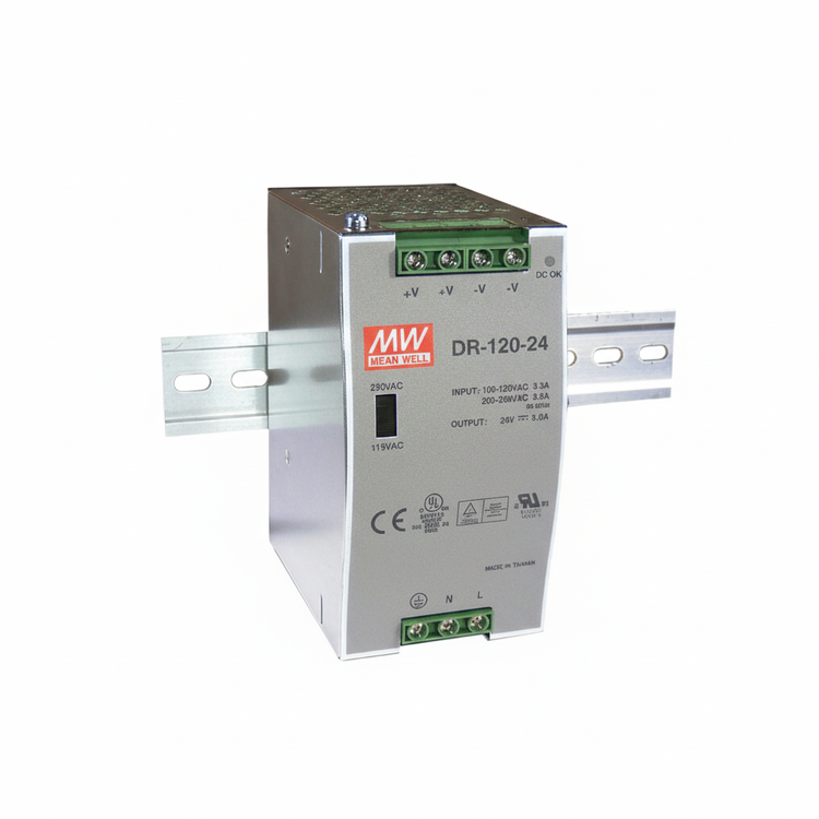 منبع تغذیه Mean Well DR-120-24 یک پاور سوئیچینگ ریلی با خروجی 24 ولت DC / 5 آمپر و توان نامی 120 وات است. این مدل با طراحی مستحکم، قابلیت نصب روی ریل DIN و کارکرد پایدار در محدوده ولتاژ ورودی وسیع (88 تا 264 ولت AC) برای پروژههای اتوماسیون صنعتی، تابلو برق و تجهیزات کنترلی ایدهآل است.