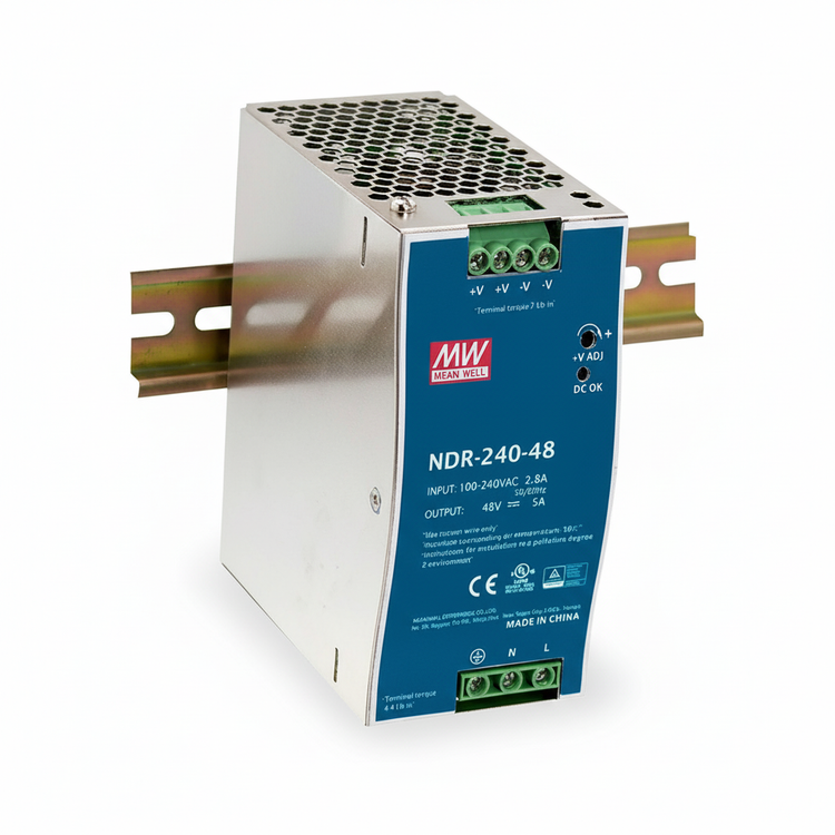منبع تغذیه مین ول NDR-240-24 با توان ۲۴۰ وات و خروجی ۲۴ ولت ۱۰ آمپر، گزینهای ایدهآل برای تابلو برقها و پروژههای صنعتی با نیاز به توان متوسط تا بالا است. این مدل به دلیل قیمت مناسب، راندمان بالا و حفاظت کامل، یکی از پرفروشترین منابع تغذیه در بازار ایران محسوب میشود.